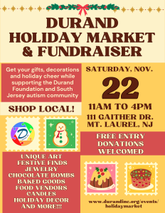 Shop local, spread kindness, and make your holiday shopping meaningful — all proceeds benefit the South Jersey Autism community through the Durand Foundation’s programs and services.
